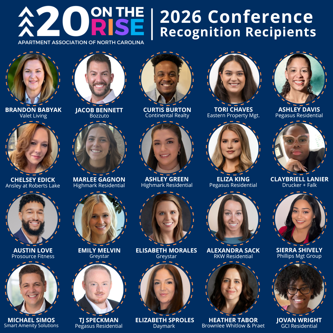 20 on the Rise, powered by the AANC NextGen Committee, celebrates 20 rising stars with 10 years or less of experience in the rental housing industry. This year's honorees receive the opportunity to attend the 2026 AANC CONNECTed Conference in Raleigh from May 11-13 for just $49!